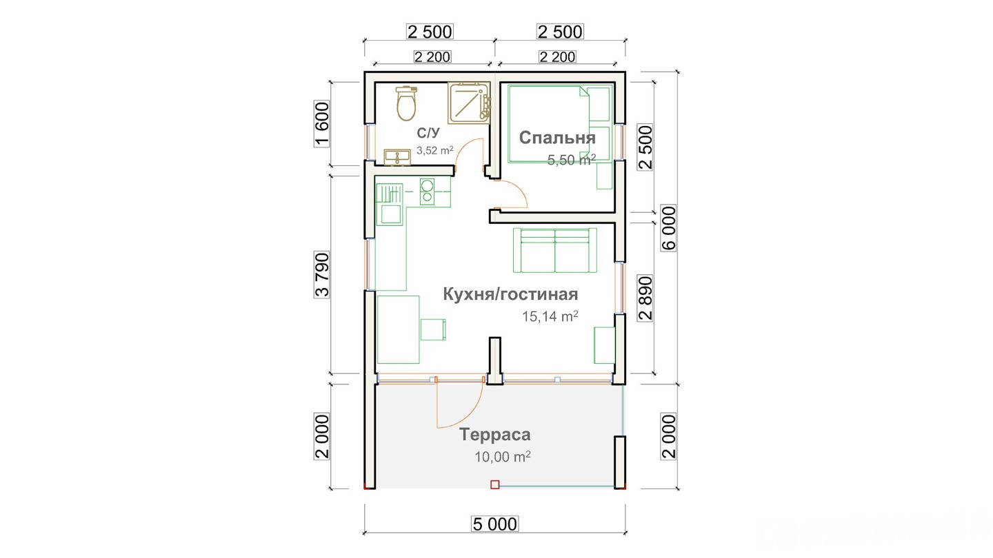 Предлагаем просторный проект 40 м² (5×8 м), созданный по передовым модульным технологиям. Это идеальный выбор для тех, кто ценит эстетику и не хочет ввязываться в многолетнюю стройку.
